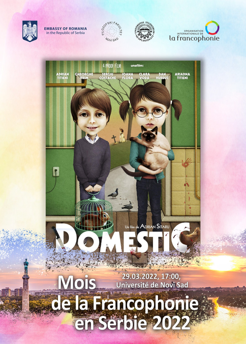 Projekcija rumunskog filma Domestic (sa prevodom na francuski), jedna u nizu aktivnosti kojima se obeležava Mesec frankofonije u Srbiji, zakazana je za utorak, 29. mart 2022. godine, u 17 časova (Kino-sala Filozofskog fakulteta).