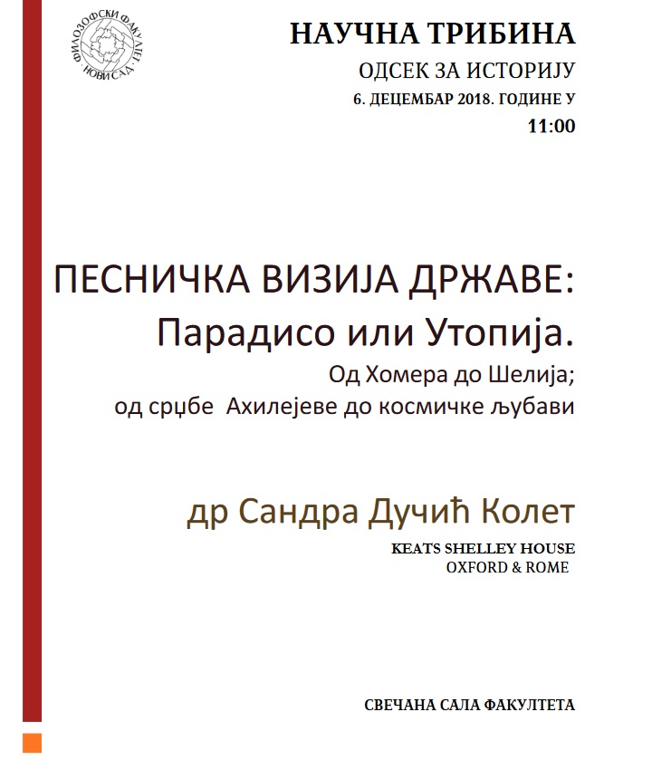 Naučna tribina Odseka za istoriju, Pesnička vizija države: Paradiso ili Utopija 05. decembar 2018. 11:59:35Opšte Slike