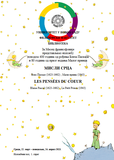 Месец франкофоније (2023) - МИСЛИ СРЦА Блез Паскал (1623-1662) ; Мали принц (1943)