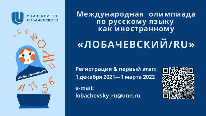 Позивамо ваше студенте да учествују у Међународној олимпијади из руског језика као страног «Лобачевски/RU», која ће се одржати до 31. марта 2022. године.