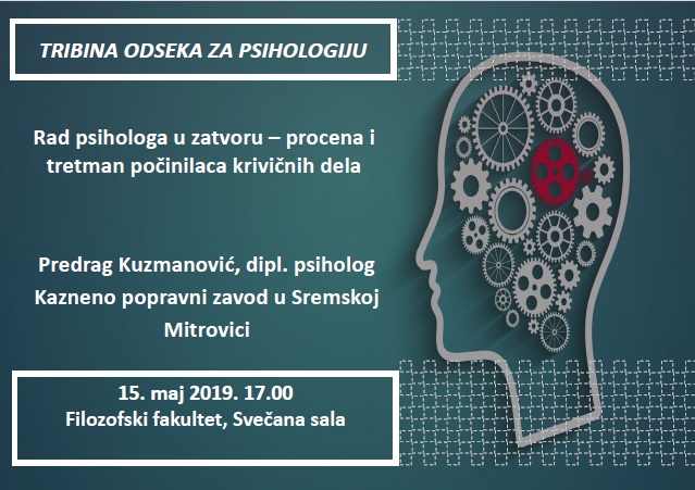 Рад психолога у затвору – процена и третман починилаца кривичних дела, 15.05.2019. u 17:00, сала 114