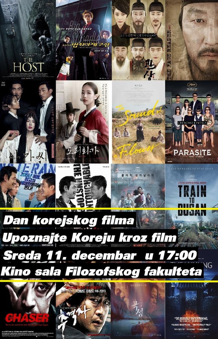 Дан корејског филма на Филозофском факултету, 11.12.2019. у 17.00 у кино-салиВреме11. децембар 2019. 17:00 Слике