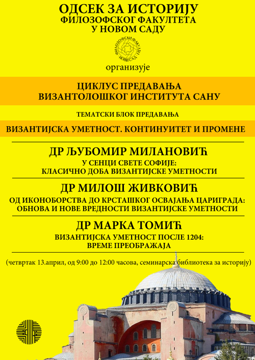 Велико нам је задовољство да Вас позовемо на наставак циклуса предавања Византолошког института САНУ који се одржава у оквиру Научне трибине историчара.