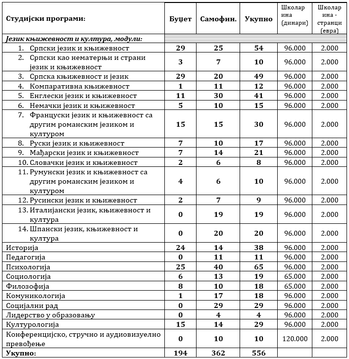 Студентска служба: +381 21 485 3976 и +381 21 450 628