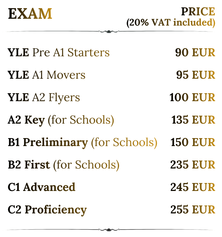 * All the dates above refer to the dates of written part of the exam. For the Speaking, the dates will be published a few days prior to the exam sitting.