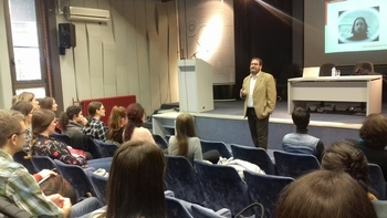 - En noviembre de 2018 hemos organizado en la Facultad de Filosofía una conferencia informativa sobre los exámenes DELE del Instituto Cervantes. El ponente invitado fue el jefe de estudios del Instituto Cervantes de Belgrado, César Luis Díez Plaza.
