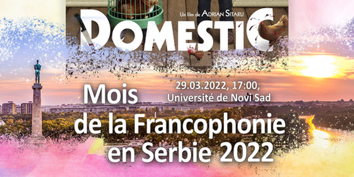 Projekcija rumunskog filma Domestic (sa prevodom na francuski), jedna u nizu aktivnosti kojima se obeležava Mesec frankofonije u Srbiji, zakazana je za utorak, 29. mart 2022. godine, u 17 časova (Kino-sala Filozofskog fakulteta).