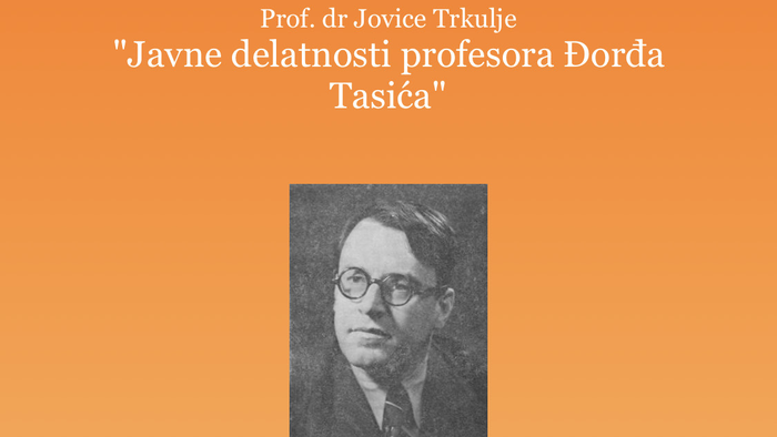 Odsek za sociologiju Filozofskog fakulteta u Novom Sadu i Novosadski sociološki klub pozivaju vas na predavanje prof. dr Jovice Trkulje pod nazivom "Javne delatnosti profesora Đorđa Tasića". Predavanje će biti održano u utorak, 15. novembra 2022. sa početkom u 14.00 na Filozofskom fakultetu u Novom Sadu u Kino sali.