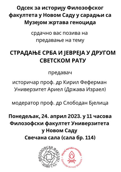 Predavanje na Odseku za istoriju - istoričar prof. dr Kiril Feferman Vreme 24. april 2023. 11:00 Slike