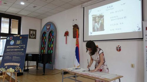 Pobednik takmičenja u kategoriji studenata sa naprednim nivoom znanja kineskog je Tijana Ćopić, studentkinja druge godine anglistike na Filozofskom fakultetu, na kojem uči i kineski jezik kao izborni. Tijana je svojim znanjem kineskog jezika, ali i kaligrafskim umećem ostavila snažan utisak i na kineske medije, koji su pratili ovo takmičenje i zvanično objavili snimak njenog kaligrafskog ispisa. U julu ove godine, Tijana će predstavljati Srbiju na svetskom takmičenju u Kini.