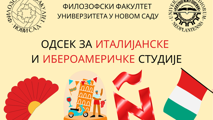 Obaveštavamo Vas da je na Filozofskom fakultetu Univerziteta u Novom Sadu (FFUNS) juna 2022. osnovan Odsek za italijanske i iberoameričke studije, proistekao iz Lektorata za italijanski i Lektorata za španski jezik Odseka za romanistiku FFUNS.