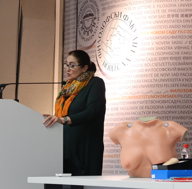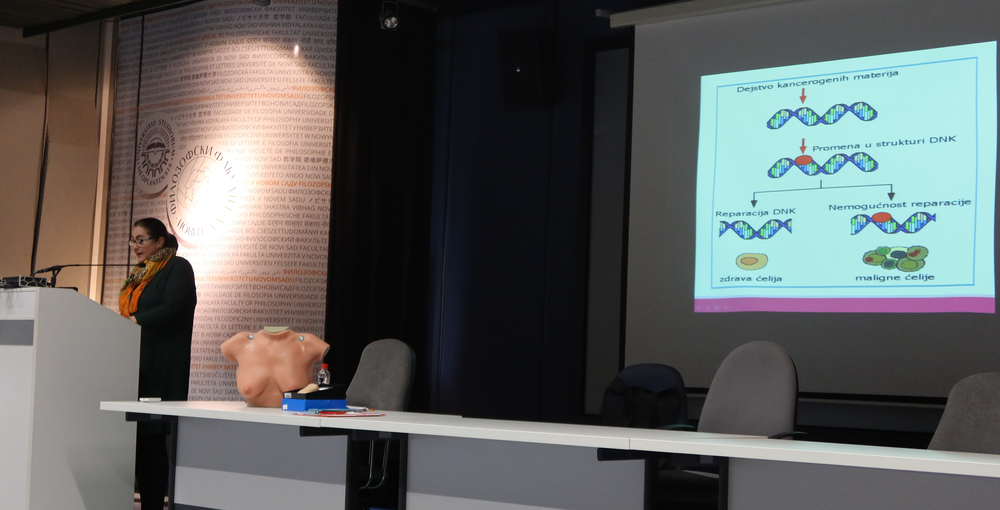 Master medicinska sestra Vesna Imbronjev, predstavila je u svom izlaganju faktore rizika za oboljevanje od raka dojki i raka testisa, kao i neke od načina na koje se bolest može sprečiti, naročito među mladima. Posebnu pažnju posvetila je i ranom otkrivanju bolesti i obuci za samopreglede dojki i testisa.
