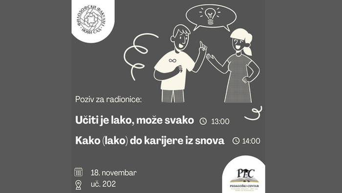 Poziv za radionice: ”Učiti je lako, može svako” i ”Kako (lako) do karijere iz snova”