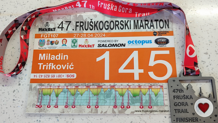 OpšteKolega Miladin Trifković, šef tehničke službe Filozofskog fakulteta, po peti put u planinarskoj karijeri je stigao na cilj na Ultra-stazi Fruškogorskog maratona. Ultra-staza je dugačka 107,414 km, sa ukupnim kumulativnim usponom od 4269 m.