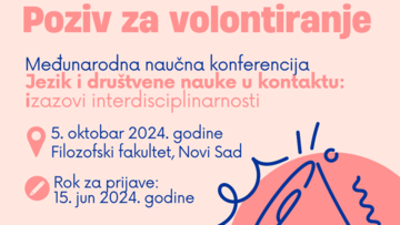 Centar za interdisciplinarna istraživanja i razvoj istraživača organizuje međunarodnu naučnu konferenciju „Jezik i društvene nauke u kontaktu: izazovi interdisciplinarnosti“, koja će biti održana u subotu, 5. oktobra 2024. godine na Filozofskom fakultetu u Novom Sadu.