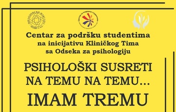 Центар за подршку студентима - ПОЗИВ НА ПСИХОЛОШКИ СУСРЕТ на тему на тему... ИМАМ ТРЕМУ, четвртак, 28.03.2019. у 17.30