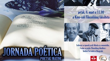 Обавештавамо вас да ће у петак, 8. марта у 11.00 у Кино-сали Филозофског факултета бити одржан песнички матине, на којем ће студенти готово свих одсека наше установе говорити стихове великих шпанских и латиноамеричких песника.