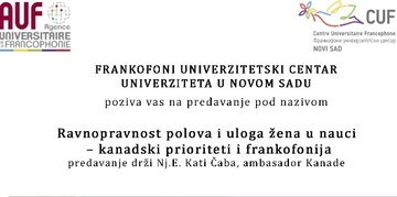 Предавање Њ.Е. Кати Чабе, Амбасадора Канаде - Равноправност жена и улога жена у науци – канадски приоритети и франкофонија, 11.3.2019.Време08. март 2019. 10:31 Слике