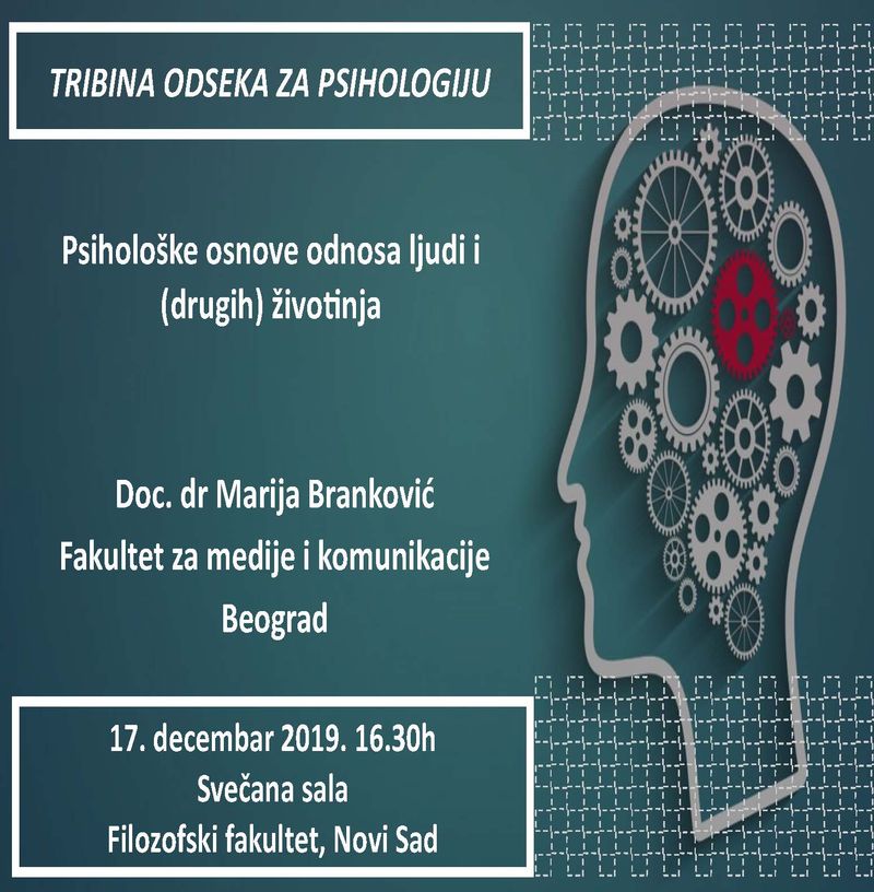 Трибина Одсека за психологију Психолошке основе односа људи и (других) животиња, 17.12.2019. у 16.30, 114/1