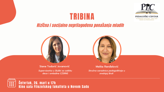 Са задовољством вас позивамо на трибину „Ризична и социјално неприлагођена понашања младих“!