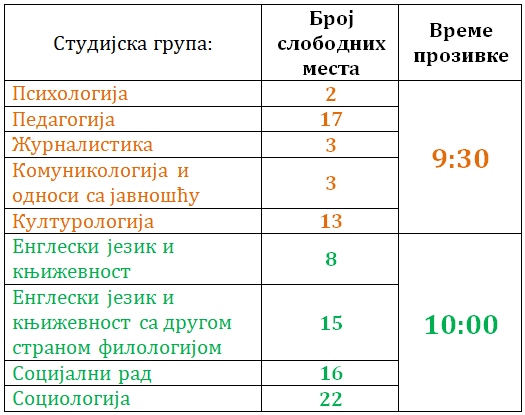 12.07. Прозивка за самофинансирајућа места - распоред по групама