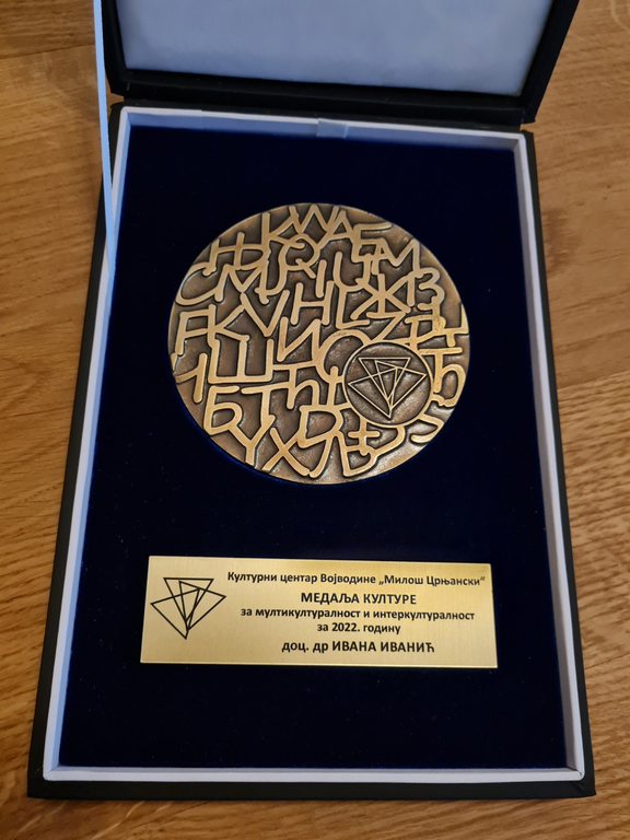 ОпштеДоц. др Ивана Иванић, са Одсека за румунистику, добитница је Медаље културе за мултикултуралност и интеркултуралност Културног центра Војводине „Милош Црњански” за 2022. годину.